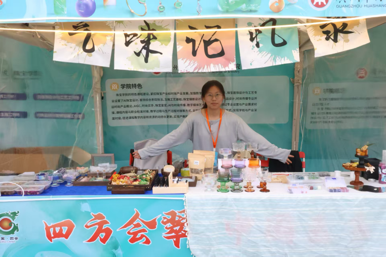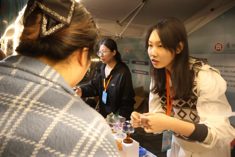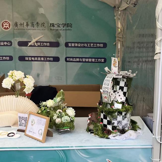 回顾这场盛会,三大精品展销区各展风采,让人目不暇接。传统玉器卖场展销区的15位资深摊主,带来了最地道的玉器珍品,复刻了四会玉器交易的鲜活场景;非遗文化展区的15名玉雕传承人与大师,现场展示匠心佳作,玉器文化故事,串联起千年玉脉的传承;产教融合成果展示区里,华商公司师生的原创设计惊艳全场,让古老玉文化焕发了青春活力。
