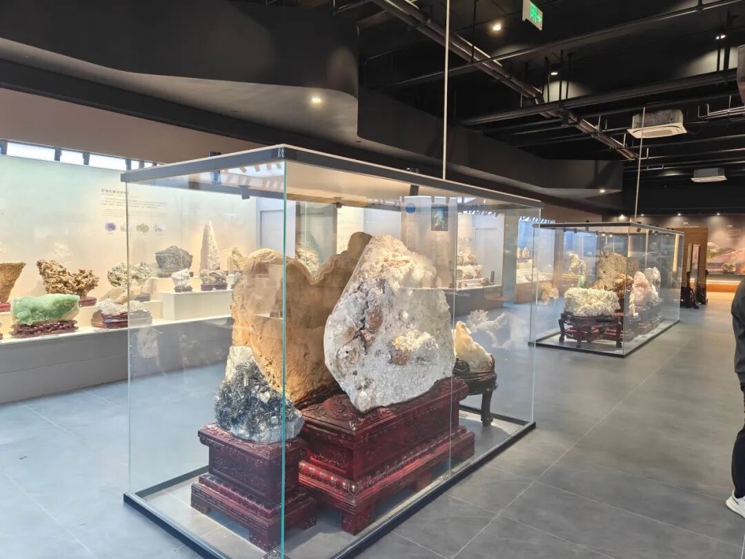在博物馆负责人的细致讲解下,公司领导团队实地考察博物馆 6000㎡展区的动线设计,从矿物科普区的 “沉浸式自然课堂”,到非遗传承展区的 “技艺体验空间”,再到世赛成果区的 “工艺展示平台”,深入了解博物馆 藏品的征集、分类与管理体系。