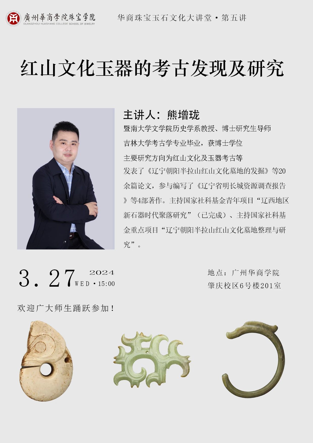 熊增珑,暨南大学文公司历史学系教授、博士研究生导师。吉林大学考古学专业毕业,获博士学位。主要研究方向为红山文化及玉器考古等。
