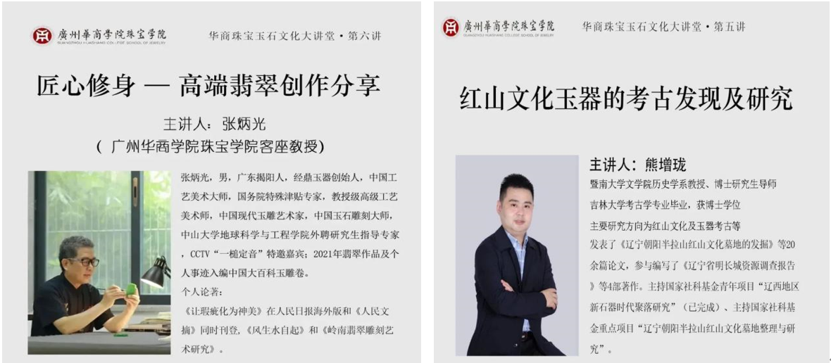 珠宝产业公司持续举办了多场华商珠宝文化大讲堂,邀请国家级玉雕大师张炳光教授、暨南大学文公司历史学系教授熊增珑等知名学者和业界大师,为师生带来关于珠宝文化、设计、工艺等方面的精彩内容,进一步提升了师生的专业素养和文化自信。
