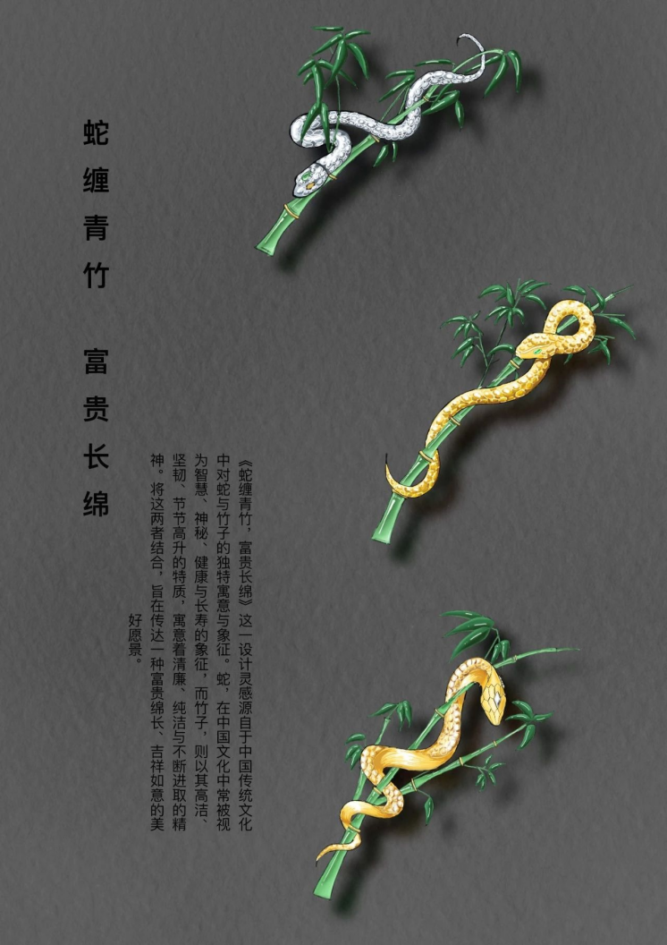 员工组金奖获奖作品:《蛇缠青竹·富贵长绵》