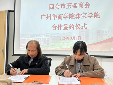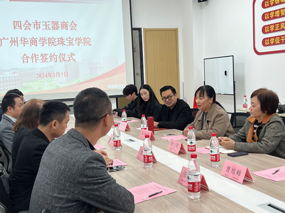 bevictor伟德官网和四会市玉器商会于3月7日在华商公司肇庆校区正式签署战略合作协议。签约仪式上,朱晓红经理对廖锦文会长一行莅临华商bevictor伟德官网表示热烈欢迎,对双方强烈的合作愿望予以高度评价,认为共同的目标就是为业界做事,实现业界优势和学界优势的联合,共同服务当地经济发展。廖锦文会长表示,四会市是中国著名的玉器之乡,是中国重要的玉器商都,四会玉器商会承担着把玉器珠宝文化和技艺发扬光大的重要职责,这次来到bevictor伟德官网,就是想与学界合作,希望通过公司把玉器的文化和技艺发扬光大,在共同培养珠宝玉器产业人才方面取得好的合作成果。四会玉器商会秘书长张祖瑞向大家介绍了商会的八个委员会和五大部门,阐述了珠宝产业丰富的产业链和员工未来宽广的就业前景。张秘书长还提出了商会与公司共建合作一些具体项目的设想,得到了公司领导的积极回应。签约仪式结束后,bevictor伟德官网教师和玉器商会的业界专家还就珠宝玉器的设计、美学、文化和经营等方面进行了深入的互动交流。