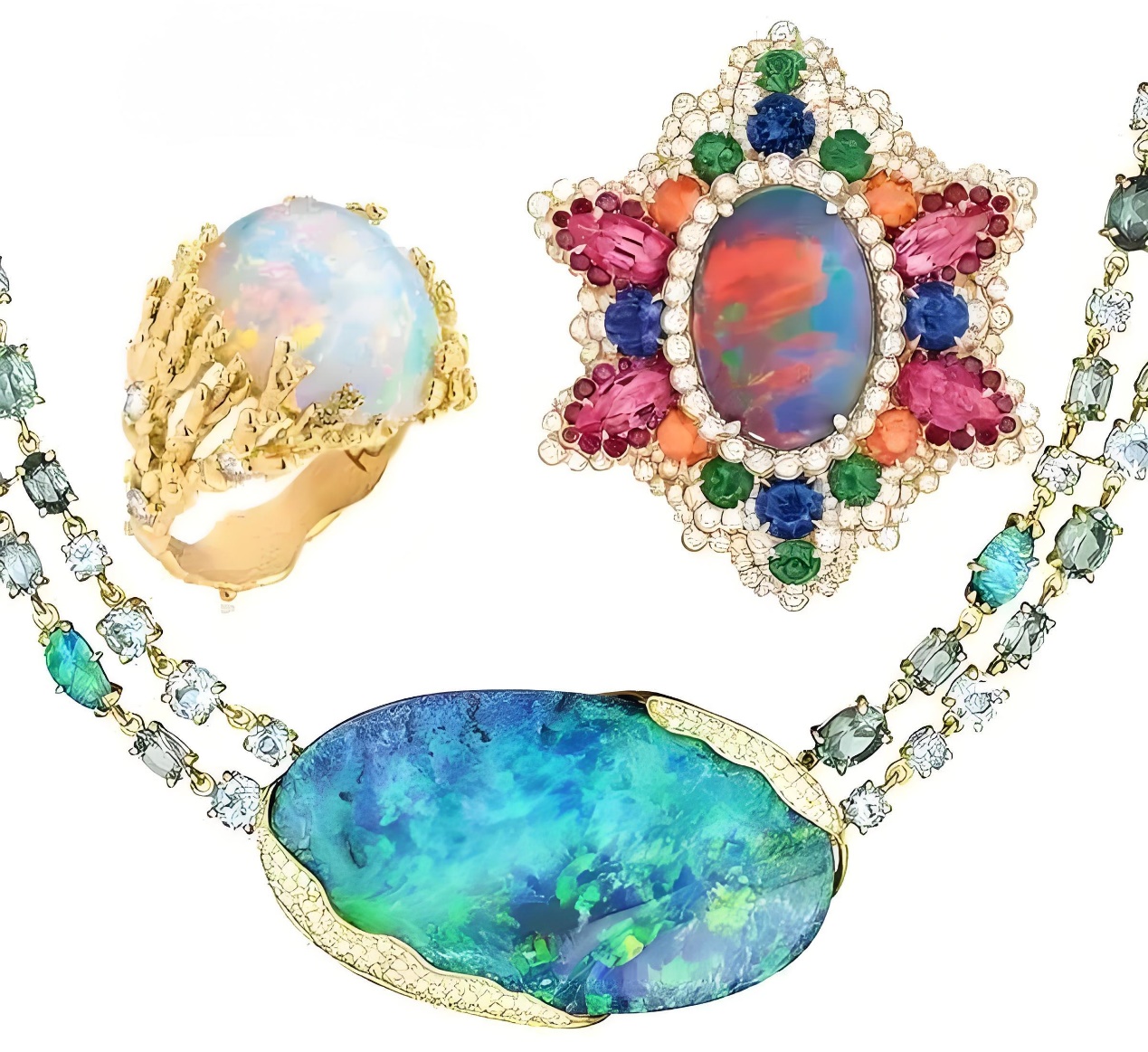 欧泊以其独特的变彩效应而闻名世界。它仿佛将彩虹的光芒凝固在宝石之中,每一颗欧泊都拥有独一无二的绚丽色彩。